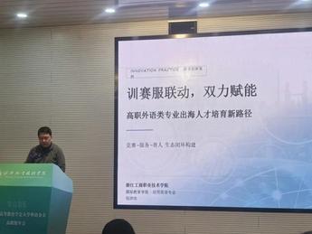 3月13日至14日,浙江省高等教育学会大学外语分会高职组年会在绍兴职业技术学院隆重举行。本次年会以"服务新双高、外语新担当"为主题,聚焦"新双高"背景下高职外语教育的改革与创新。我校国际交流学院钱律伟副教授主持的《训赛服联动,双力赋能:高职外语类专业出海人才培育新路径》案例经过严格评审,从全省众多申报案例中脱颖而出,获评优秀典型案例。钱律伟老师受邀在大会上作专题案例分享,向全省高职外语教育同仁介绍我校应用英语专业的创新实践。